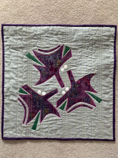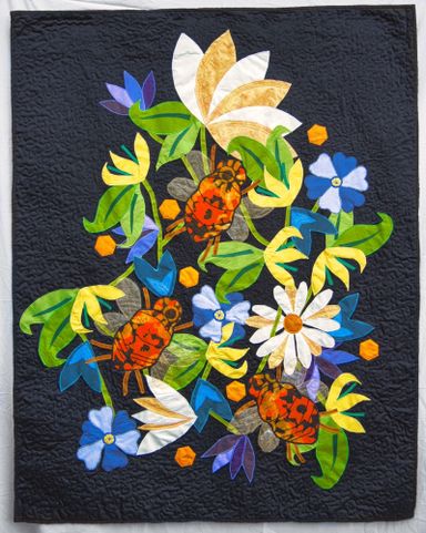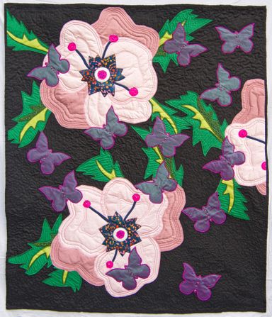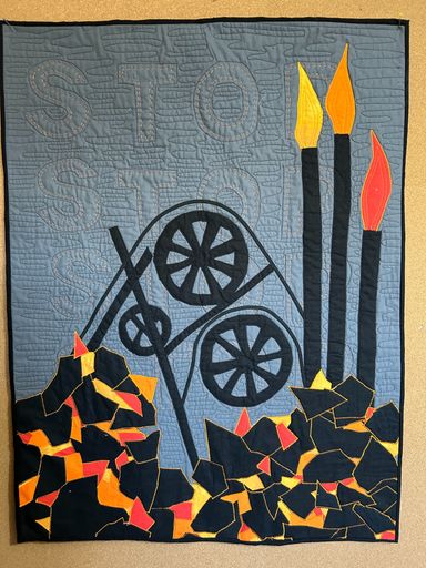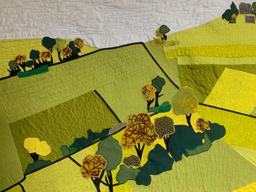Machine appliqué, machine piecing, machine quilting. (78cmsW x 97cms wide) Juried into Bearing Witness exhibition, 2024-7. ON LOAN